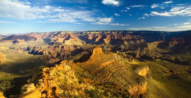 南凯巴布步道位于美国科罗拉多大峡谷,由于峡谷两壁的岩石性质、所含矿物质的不同,在阳光照射下,呈现不同的色彩。