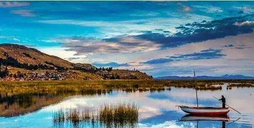 广袤无垠的湖水经常被笼罩在淡淡的雾气,的的喀喀湖是南美洲地势最高、面积最大的淡水湖,也是世界海拔最高的大型淡水湖之一。湖中有52个岛屿,大部分有人居住,岛上还留有印加时代的神庙遗址。