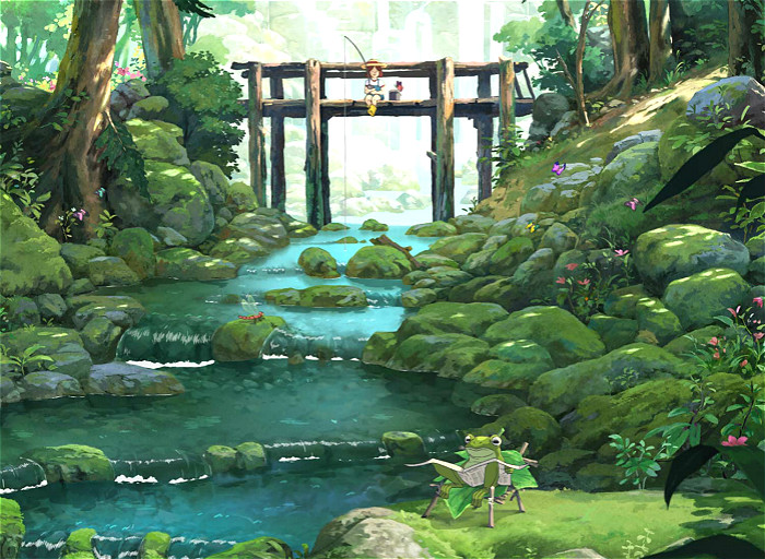 它让人们想到了宫崎骏的动画,仿佛置身于了二次元的想象空间。一望无垠的绿色梯田、森林里的小桥流水、含苞待放的艳丽花朵、一群赛龙舟的人们、在热气球里品味地道葡萄酒的美味、还有一只巨大的兔子带着我们一起探索奇妙且未知的世界。