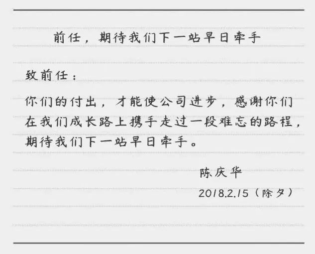 木屋烧烤发了针对前员工的招聘海报,食三姨malatang陈庆华则是把“前员工”比成“前任”,不时写亲笔信,甚至还招收“六进六出”的前员工。真鱻的创始人伍福利还发现,“前员工”经历了一趟“出走”后,会表现得更好,带团队也更出色。