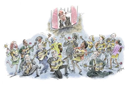 图片来源:纽约时报 《各地向贝索斯献技献媚》