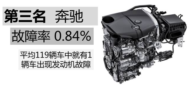 从数据看,奔驰的发动机可靠性似乎比宝马 奥迪更加优异,每119辆车中才有1台车发动机会出现故障,这点在豪华品牌中已经算比较优异了。