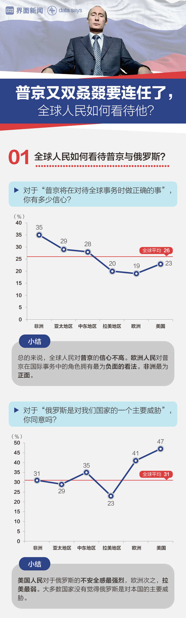 美国人对俄罗斯的不安全感最强烈,欧洲次之。