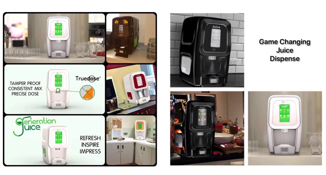 点评:Generation Juicedispenser榨汁机具有多种优势。首先外观现代时尚,新颖有趣的触摸屏app,可为客户定制颜色;其次,尺寸更小,节省空间;此外,采用新获专利Truedose 技术,每次均可将各种水果果浆完全融合,打造出清凉而细腻的果汁。更有多种定制选择,触摸屏菜单上虽只有1-3种果汁选项,却有1-9款不同饮料选择,如轻饮料、低卡、mocktail及专为儿童设计的果汁及冰沙等以满足不同客户的需求。只需20分钟即可刷新客户体验。