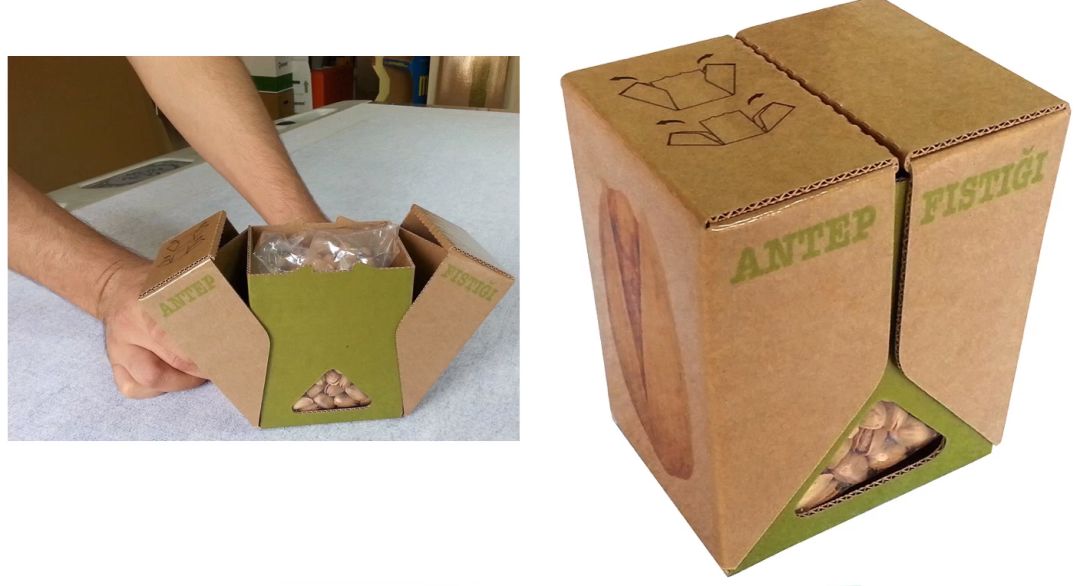 土耳其领先的包装公司Mondi Tire Kutsan为本国开心果打造的这款Pistachio’s Dream,“开心果之梦”的包装盒,仿造开心果造型,从顶部中间将盖子掰开,即可见袋装开心果,兼具创意与保鲜的功效。