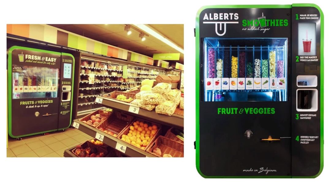 点评:经过团队人员的艰苦工作、消耗了大量脑力及攻克了大量难关后,终于开发出这款Alberts Smoothie Station。这是欧洲第一款装载有新鲜原料的冰沙机器,整个过程生动且毫无隐藏的展示在客户面前。这款冰沙售卖机可以根据用户个人选择及配方,提供冷冻果蔬制作的100%天然冰沙。