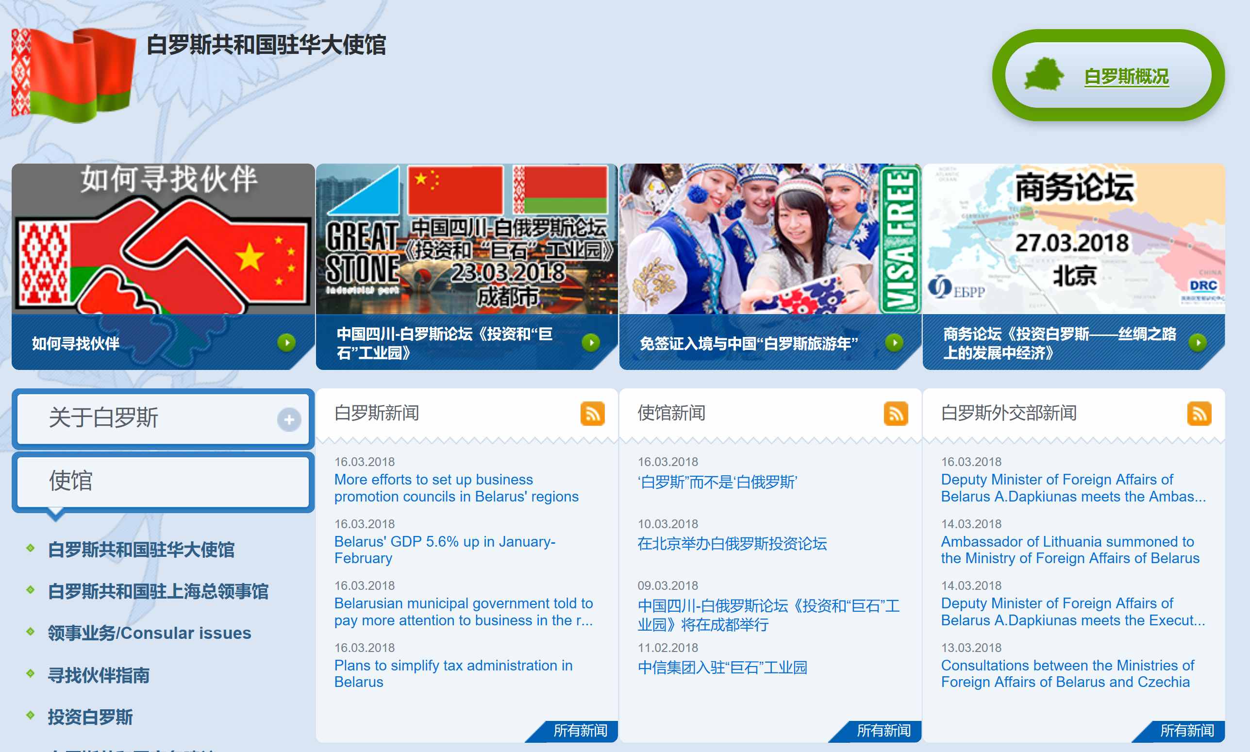 截至周六(3月17日),白俄罗斯驻华大使馆已经更新了自己的网站。除了过时的新闻稿以外,页面中所有的“白俄罗斯”字样都已被替换为新名字“白罗斯”。