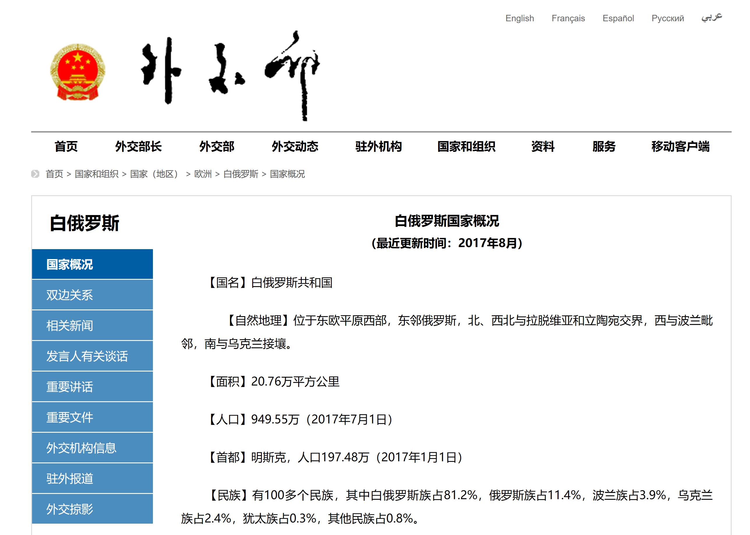 东欧国家白俄罗斯共和国(Republic of Belarus)是俄罗斯和乌克兰等国的邻居,1991年离开前苏联后宣布独立。在中文里,这个国家的国名曾旧译为别洛露西亚或别拉罗斯,但现在的官方叫法是“白俄罗斯”。然而就在周五(3月16日),白俄罗斯驻华大使馆突然发布声明表示,他们其实对这个中文名很有意见。