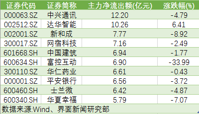 在本周主力资金持续净流出个股中,共计有120只个股累计主力净流出额超过1亿元,而五个交易日累计主力资金净流出额超过5亿元的个股共有11只。其中,中兴通讯(000063.SZ)、达华智能(002512.SZ)、新和成(002001.SZ)等个股遭遇主力资金大幅抛售,五个交易日累计净流出额分别为12.20亿元、10.26亿元、7.78亿元。