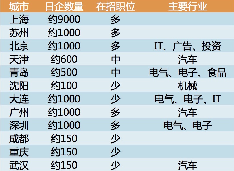 截至目前,已经有超过15000家日资企业落户中国大陆地区,其中,上海以吸引超过9000家日企落户排名第一。3月17日,日本国驻上海总领事馆联合上海艾杰飞人力资源有限公司(下称RGF)主办日企就业信息分享会上披露。RGF是日本人才综合服务和情报服务集团Recruit的中国子公司。据RGF统计,日资企业在中国大陆的劳动力需求量正处于爬坡阶段。2017年,日资企业新增9224个就业岗位,较2016年同比增长2%。