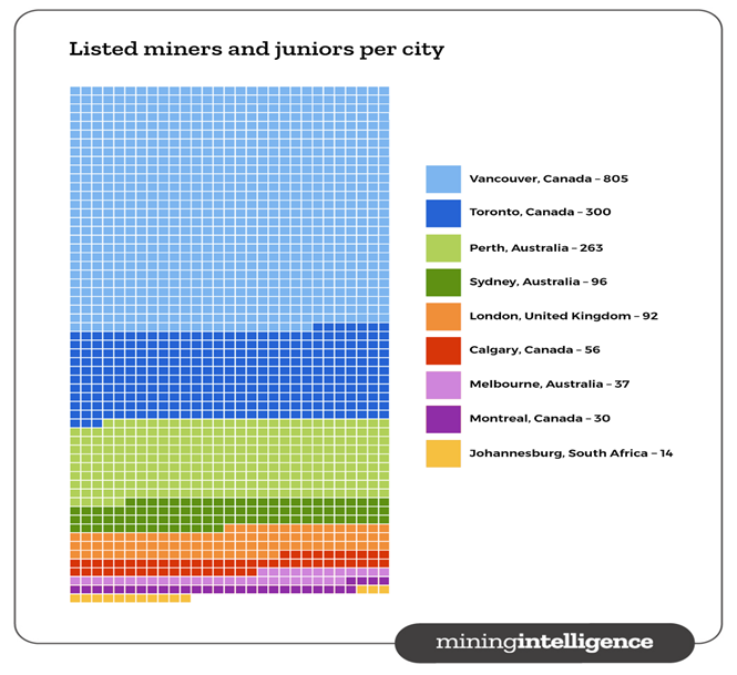 加拿大多伦多是全球矿业融资的主要枢纽。2014年,多伦多证交所占全球采矿业股本的62%,融资近90亿加元。多伦多证交所(TSX)及多伦多证交所创业板(TSXV)汇聚了世界上57%的上市矿业公司,2015年总共有1480亿多加元股本入场交易。按发行人市值排名,多伦多交易所是世界第七大证交所,其中矿业、石油及天然气上市数量均居世界第一位。另外,根据加拿大Fraser Institute最近发布的全球十大矿业投资目的地中,加拿大萨斯喀彻温、魁北克和安大略名列其中,占据了3个席位。