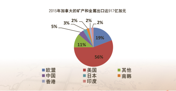 2008年金融危机后,加拿大积极开发中国市场,使得对华矿产品出口急剧上升。2012年,加拿大向中国出口矿产品总值49.65亿美元,同比增加21%,达到有史以来的最高峰。然而,此后,随着中国产能过剩,加拿大对华矿产品出口出现了急剧下跌。2013年对华出口矿产品46.81亿美元,同比减少6.1%;2014年对华出口矿产品29.26亿美元,同比减少37.5%;2015年对华出口矿产品16.99亿美元,同比减少44.3%。2016年加拿大对华矿产品出口才开始出现回升,2017年达到20.95亿美元。