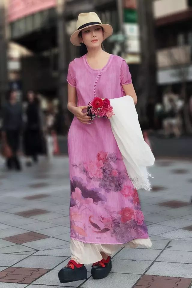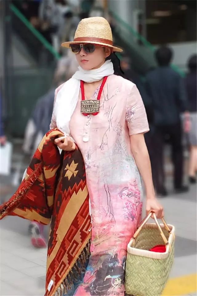 清新草帽+雪纺印花裙,浓浓的文艺范儿