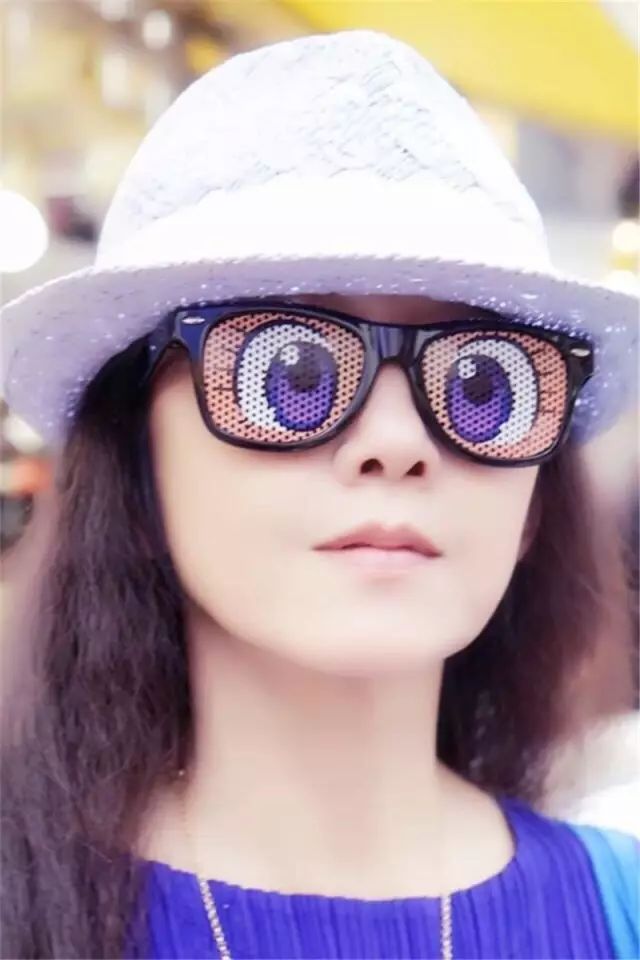 清凉草帽+搞怪眼镜,突出杨老师俏皮可爱的一面