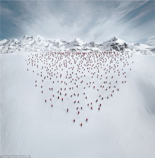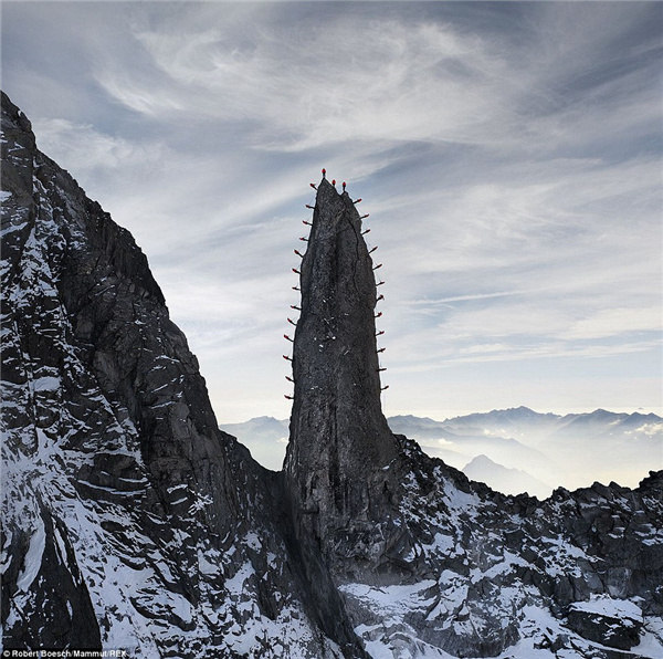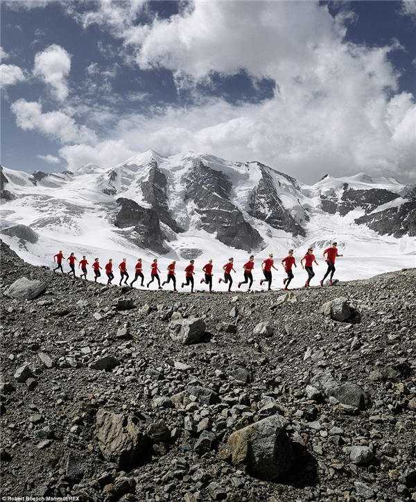 由滑雪运动员,登山者,越野跑步者,登山向导们组成的团队不顾瑞士山区的悬崖峭壁,组成了一个个令人瞠目结舌的画面,而这些都由登山摄影师Robert Bösch捕捉入镜头中。