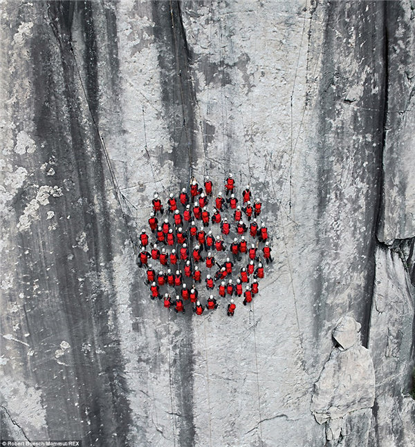 为了拍摄出这幅画面,团队中有的人爬到30米高处时要在空中等两个小时以待所有人都爬到同一高度。