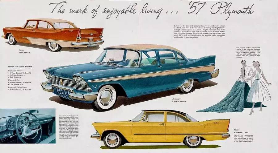 战后的1950年代,普利茅斯以其成熟可靠的技术与最高性价比而闻名,受到众多车迷的喜爱。“转眼间已是1960年代”口号的推出,更让1957年普利茅斯的销量飙升到72.6万辆,创造了普利茅斯最辉煌的年代。