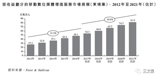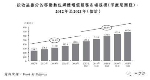 在2012年至2016年期间,印度尼西亚移动数位媒体增值服务的收益由2.4亿美元增至4.08亿美元,复合年增率为14.3%,该增长主要归因于移动互联网的普及率快速提高。未来,印度尼西亚数位媒体增值服务市场的增速预期会更为温和,将在2021年达到6.83亿美元,由2017年至2021年的复合年增率为10.5%。该持续增长主要归因于该国家信息技术持续发展所驱动。