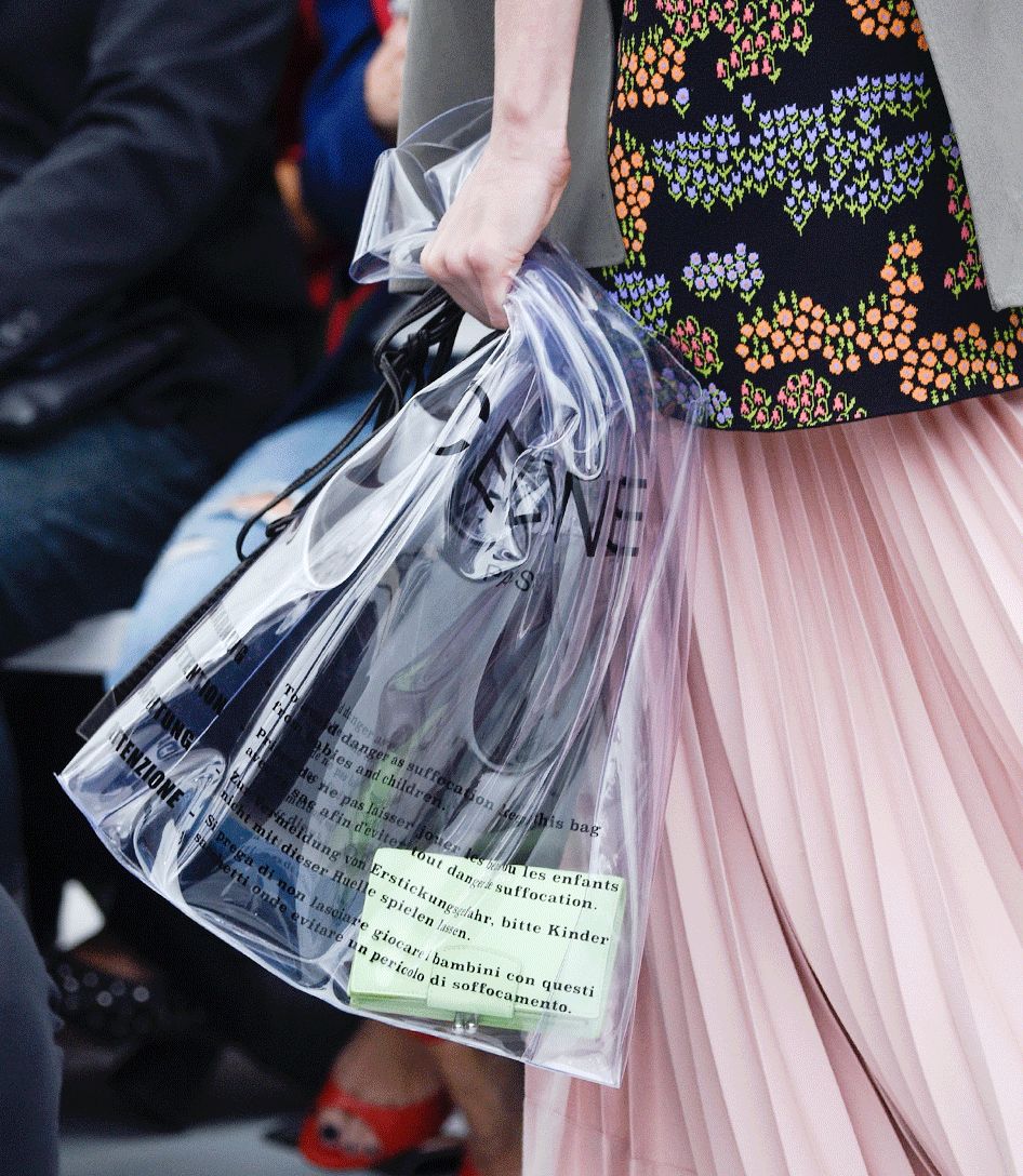 更实用的背法是,把自己本来就有的价值不菲的品牌包包放在里面。这样就等于买了“PVC包皮”。其它名牌包包都能赶上这股最新PVC潮流。并且还不怕雨淋,好看时髦的同时,又能保护好自己品牌包包。