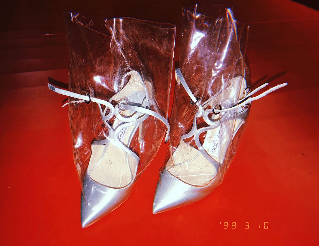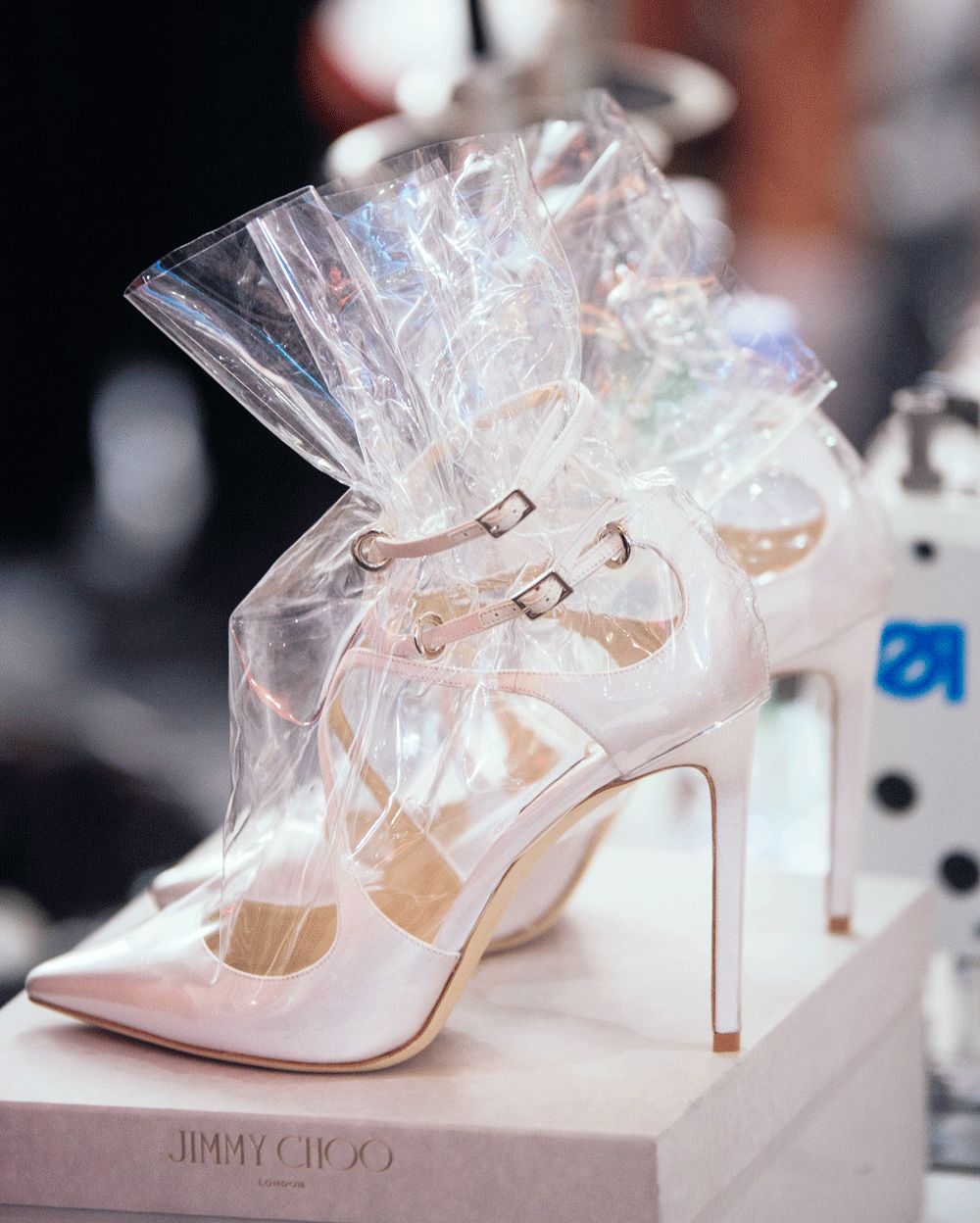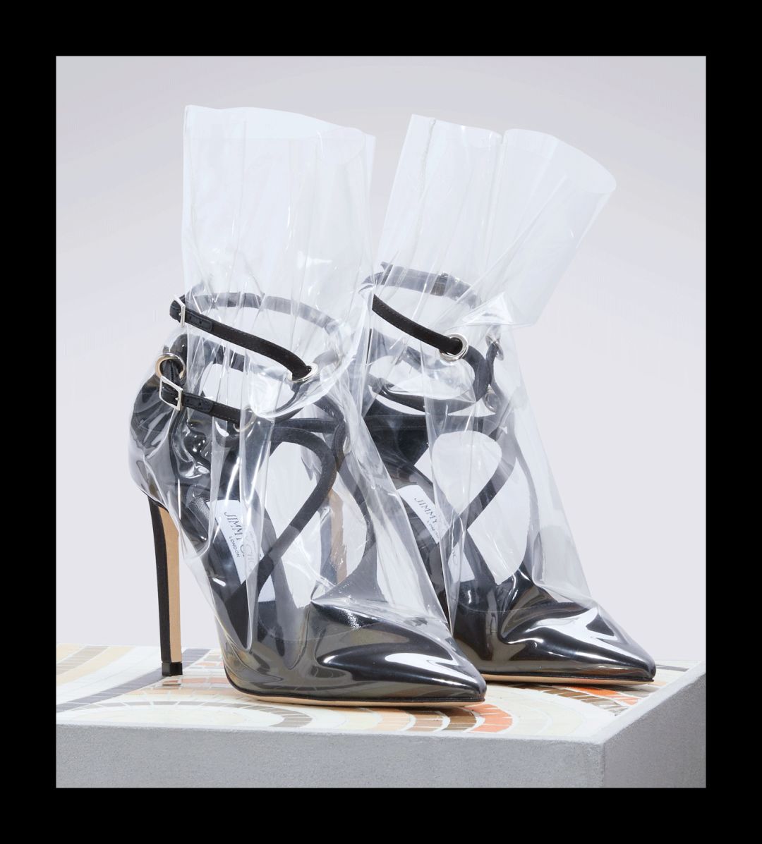 Off White把自己今年超爱的PVC材质,包裹在设计巧妙和做工精良的JimmyChoo鞋子外面。让OFF-WHITE 的街头趣味与JIMMY CHOO的高贵优雅融为一体,就诞生了这个全新的混血儿。