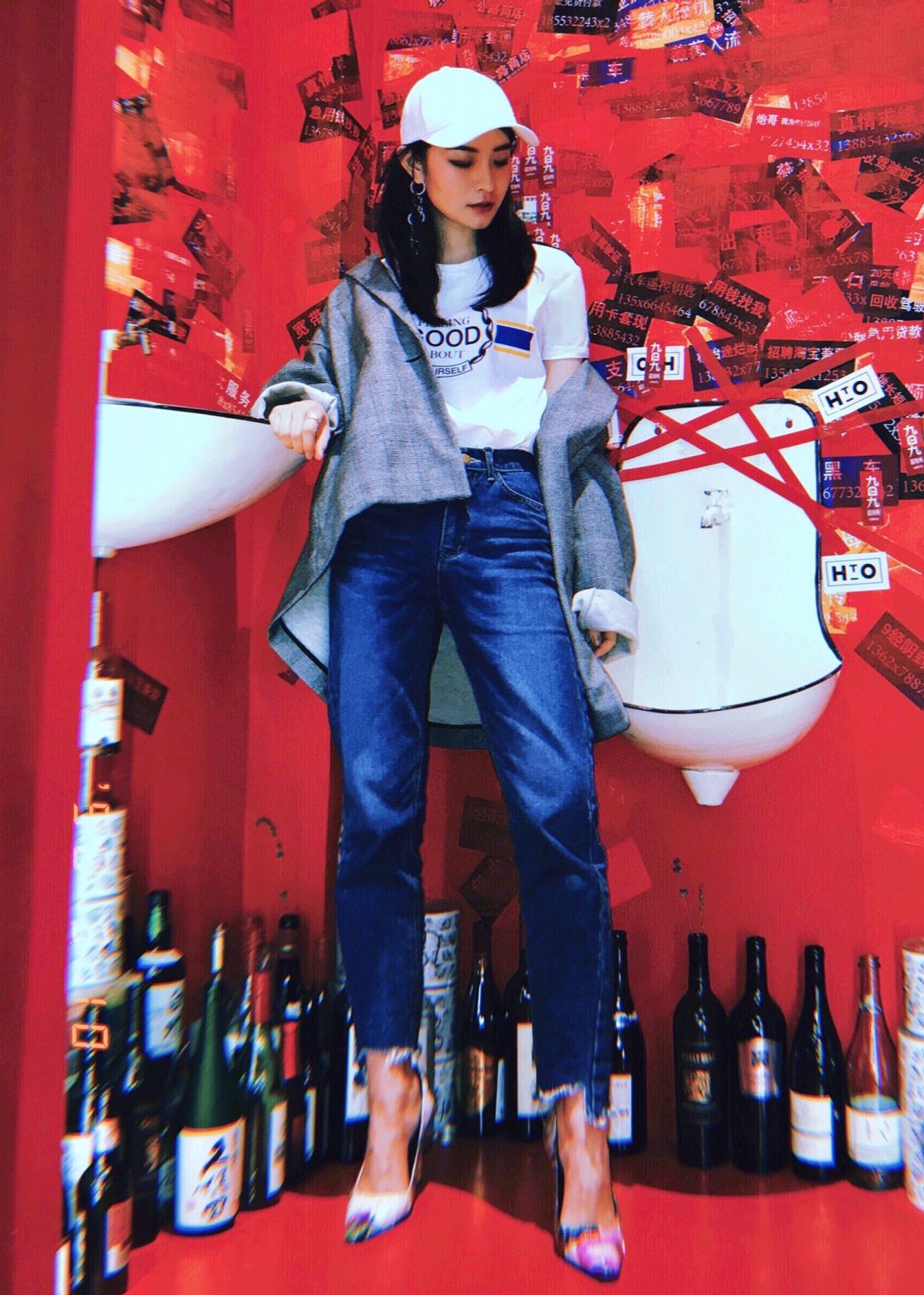 搭配的都是小西装、白T恤、牛仔裤,这种平时很常见的单品。本来这一身很普通,但穿上这双高跟鞋以后立马变得不一样。