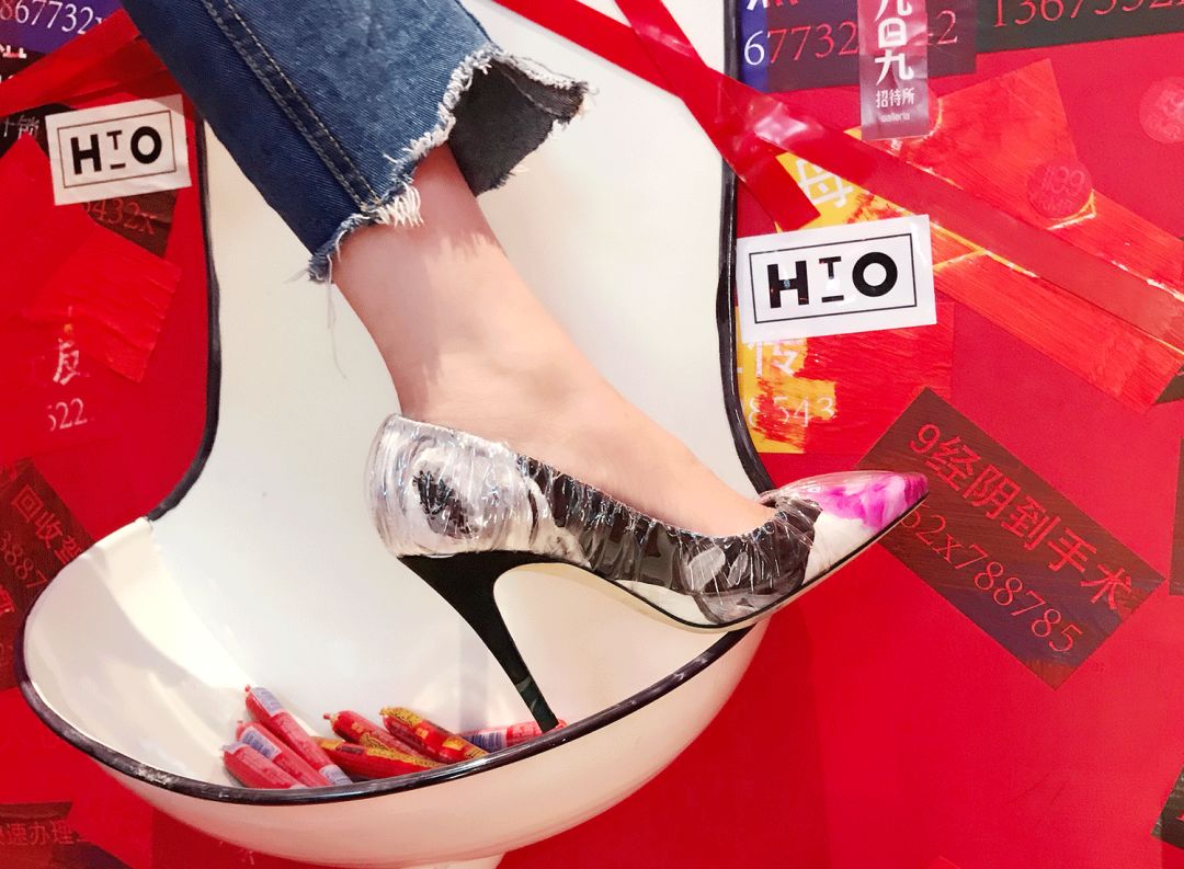 不过,对于普通人来说虽然内心跃跃欲试,但还是不敢穿。正好公司有几双,我就找来了女助理Susan先来为客官们试试水。