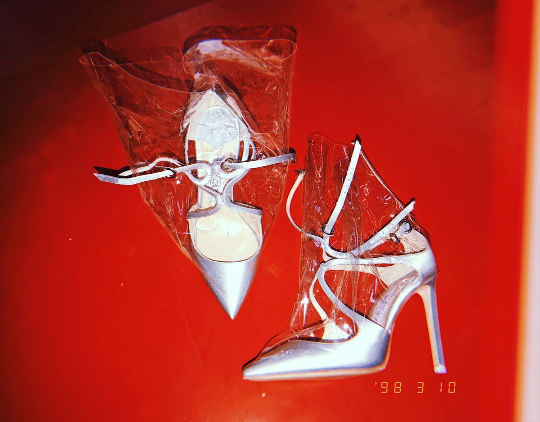 其实此次限量联名系列一共有九个鞋履款式,除了PVC包装的,还有薄纱的。