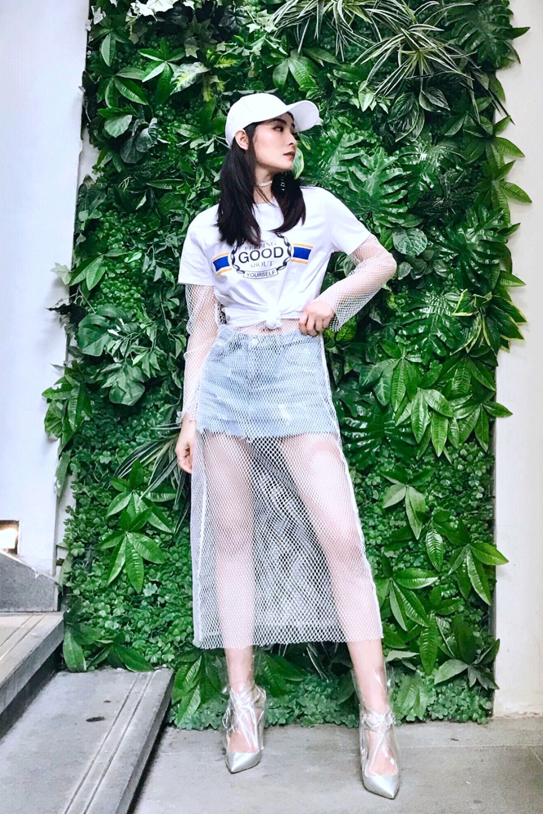 但后来换上短裙,露出腿后,立马就通透了很多。为了看起来很和谐,我把整体色系控制在冷色范围内。