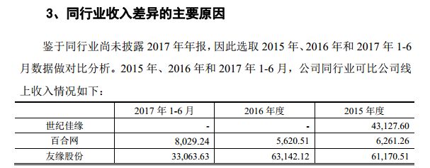 为了印证自己在招股书中多次提到的市场份额,有缘网还披露了与几大同行的业绩对比。