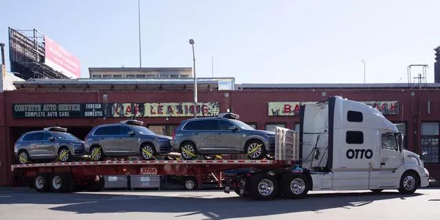 而Uber则一气之下用一辆OTTO的无人卡车拉着一排XC90自动驾驶汽车,将测试活动搬到了法规宽松的亚利桑那州(后于2017年3月获得牌照返回加州)。