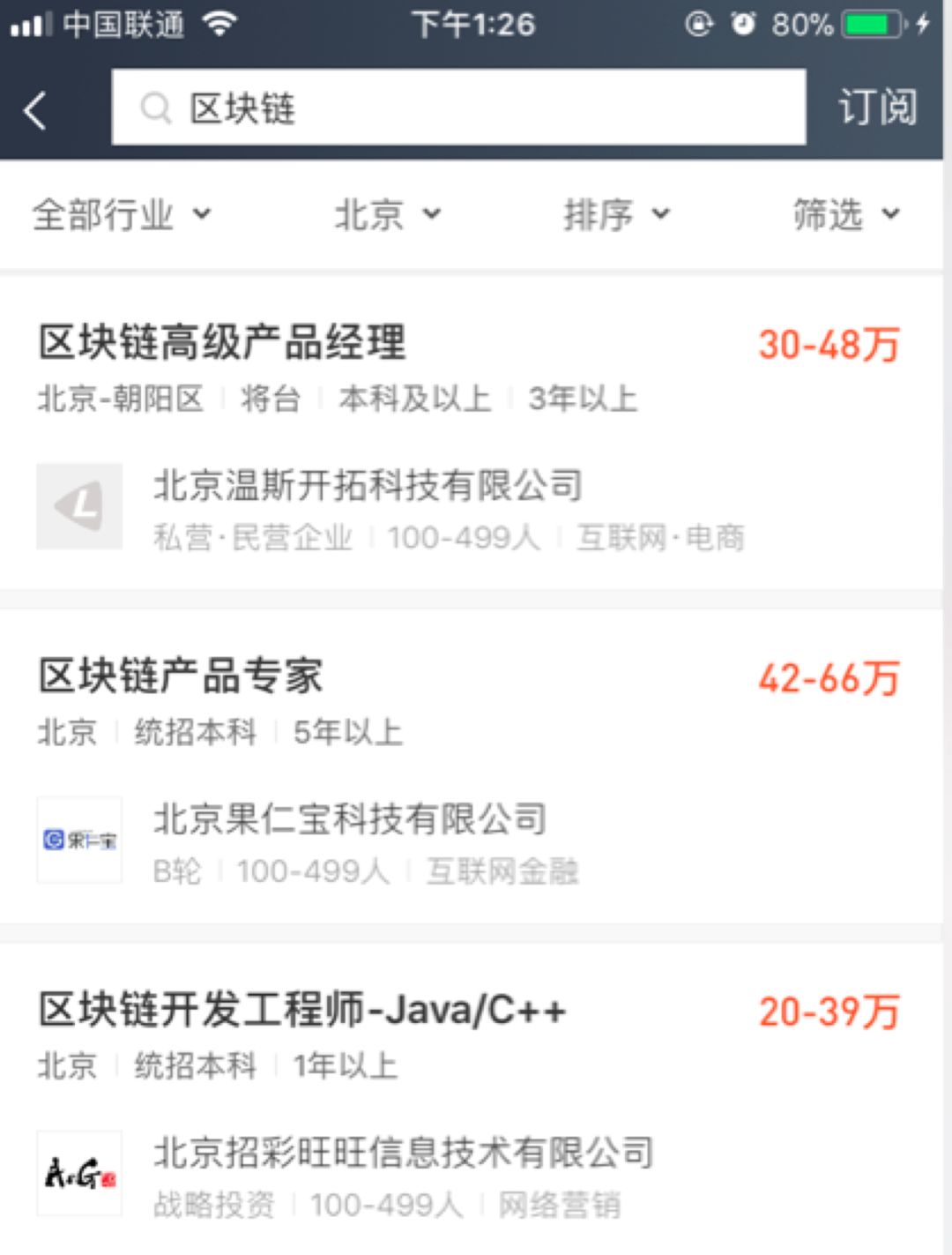猎聘网搜索区块链后截图