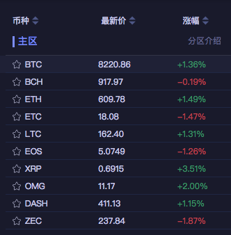 火币网数字货币价格更新截图