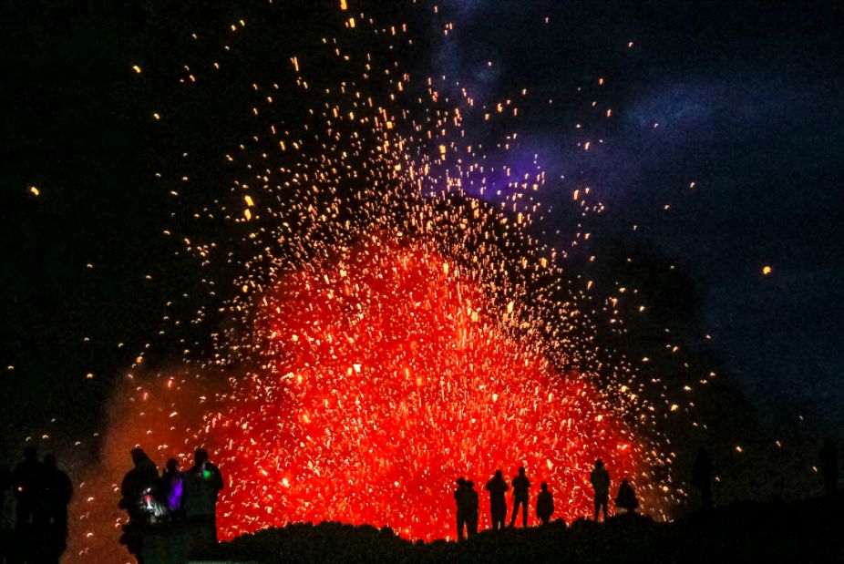 岩浆喷涌的气势,好像要把周围的一切都吞没似的。但神奇的是,伊苏尔火山口喷溅出的岩浆大多是直起直落的,在保证观赏性的同时,又既为难得地保证了安全性,因此也被誉为“世界上最亲近的活火山”。