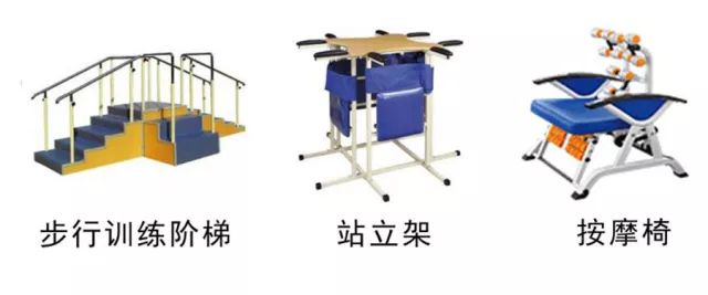 因此,例如锻炼腿部肌肉的上下台阶,以及按摩椅、站立架、步行训练阶梯等都是体疗室的常用器械。