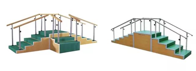 训练阶梯是养老设施中训练步行的一种装置。它主要是让老人利用阶梯扶手或拐杖进行上下台阶的步行训练。这种上下阶梯的训练可以锻炼和增强躯干和下肢力量,活动下肢关节。