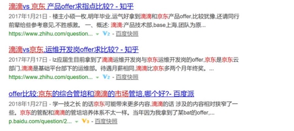 “回顾2017一整年,在招聘市场上,头条确实有隐隐盖过滴滴的趋势。”张家瑞告诉界面。在她看来,原因主要出在工作地点和薪酬竞争力两方面。首先,尽管总部同在北京,对于一些对生活品质有一定追求的候选人来讲,头条的地理位置要比滴滴更占比较优势。“毕竟滴滴在的西二旗那块娱乐活动还是较少。”