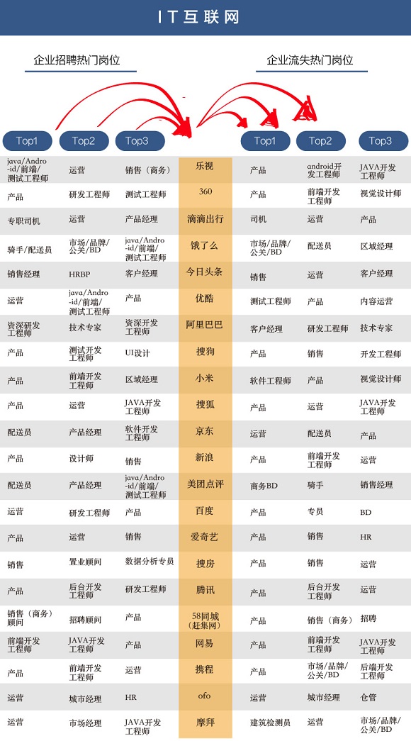 一时风光易,长占山头难,何况是在变化加速的互联网时代。远去的不只有乐视,数据显示,我们熟悉的新浪、58同城、搜狐、搜房、中兴、魅族、酷派在2017年人员规模都有不同程度下降,走红得意过好一阵的摩拜ofo在人才流动表现上也并不突出。而2018年的人才迁徙,又轰轰烈烈开始了。