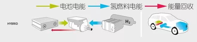 混动模式下,锂电池和氢燃料电池共同给电动机供电。