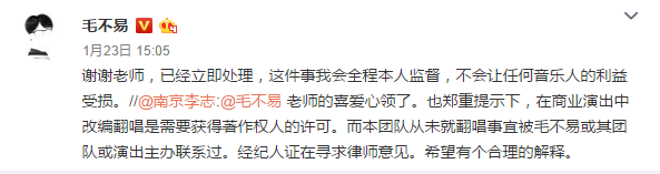 不过,除了类似于商演、演唱会上翻唱侵权,随着近几年来音乐综艺越来越受市场的青睐,节目中的歌曲改编成了侵权的又一重灾区。去年初,进口小哥哥迪玛希就因为歌曲侵权而被维达斯起诉,节目中张杰和赵雷的演唱又分别被版权方高晓松和李海鹰质问。国内的歌曲侵权行为可以说是源源不断,面对尚不健全的版权市场,许多音乐人或公司对侵权行为也大多选择视而不见。