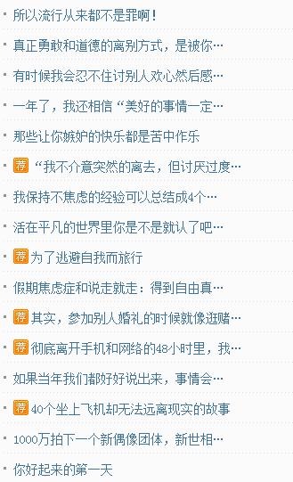 除了这两种套路化内容生产推介机制外,还有各种掺杂名人轶事名著解读类的杂文散文游记,《读者》《意林》式的文风伴上各种掉书袋姿势,高中生看了膜拜,文青小资也觉得甚合我意。