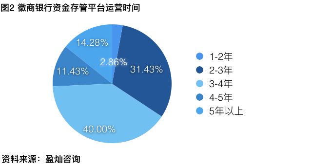 截至2018年2月底,在上线徽商银行存管的35家平台中,运营时间2-3年的平台有11家,占比31.43%;运营时间3-4年的平台有14家,占比高达40.00%;运营时间4-5年的平台有4家,占比为11.43%;运营时间超过5年的平台有5家,占比14.28%;此外还有1家平台运营时间为1-2年。从运营时间上来看,徽商银行一般选择运营时间在2年以上的平台,且以3-4年以上的平台为主。其中,笔者注意到,与徽商银行对接资金存管系统的平台中,有一家专注于消费金融的网贷平台天涯好收益,于2014年4月23日上线,目前正常运营已经近4年。经过数月的开发和调试,平台已于2018年2月正式上线徽商银行资金存管系统,标志着其向合规发展迈出关键一步,也为之后平台备案打下重要基础。在银行资金存管模式下,天涯好收益的用户都将在银行存管系统内拥有一个专属的交易资金管理账户,用户的充值、投资、提现、交易信息管理、账户信息查询、对账清算等一系列交易均在银行存管账户内独立完成,实现了平台账户与用户账户之间的有效隔离。