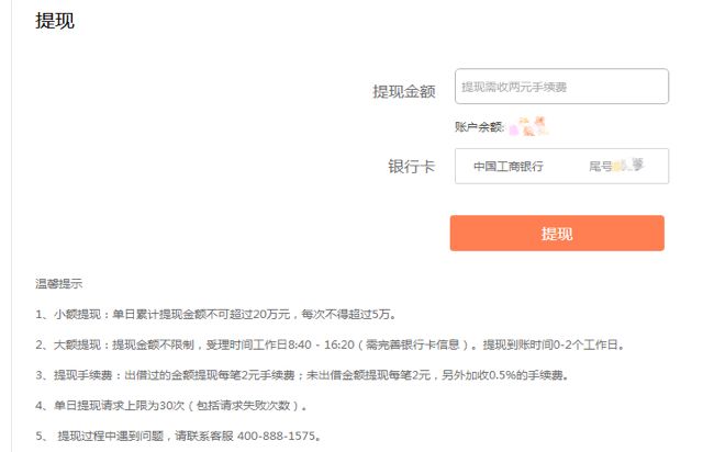 从笔者体验的几家徽商银行存管平台来看,提现一般可分为小额提现和大额提现,小额提现要求单日累计提现金额不可超过20万元,每次不得超过5万,可实时到账;大额提现金额不受限制,需工作日申请,到账时间依据发卡行不同和平台不同略有差异,一般提现到账时间为0-2个工作日。提现手续费也因平台而异,对于提现费用,有的平台不收取费用,有的平台收取1-2元/笔的费用,还有部分平台根据提现金额的不同或者提现次数的不同收取不同的手续费。此外,笔者在部分平台提现时使用360浏览器出现了不兼容的问题,重新更换浏览器后提现成功。