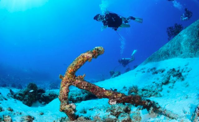 位于五号岛与六号岛之间的Anita’s Reef,为沙地混合珊瑚礁,适合调整装备以及适应水下状态,无难度,也没有激流或者横向流。在这个潜点12到18米左右有一块巨大的珊瑚礁,上面有很多的珊瑚及海扇,也有成群的玻璃鱼。