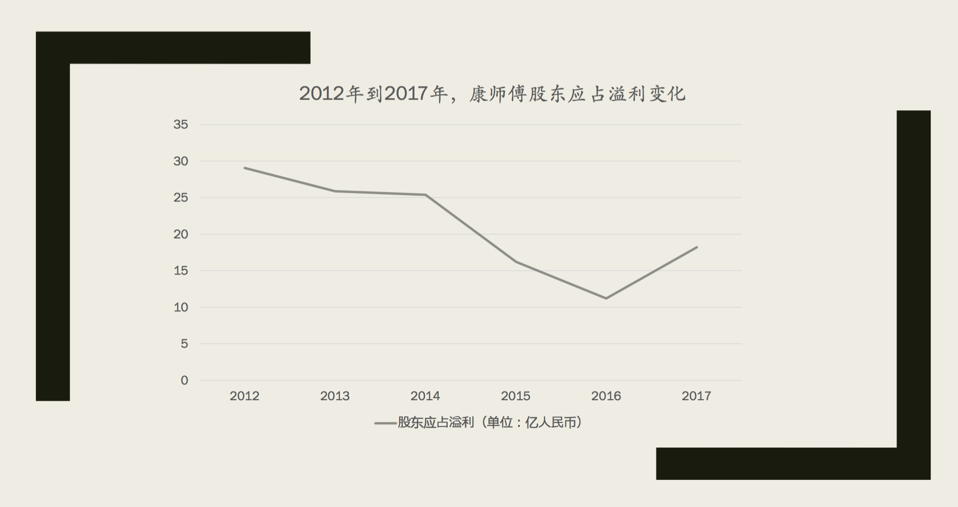 本周二,康师傅发布2017年全年财报,集团营业额为589.54亿元,较去年上涨6.07%,股东应占溢利为18.19亿元,同比增加了56.59%。这是康师傅近三年来首次实现业绩上涨。
