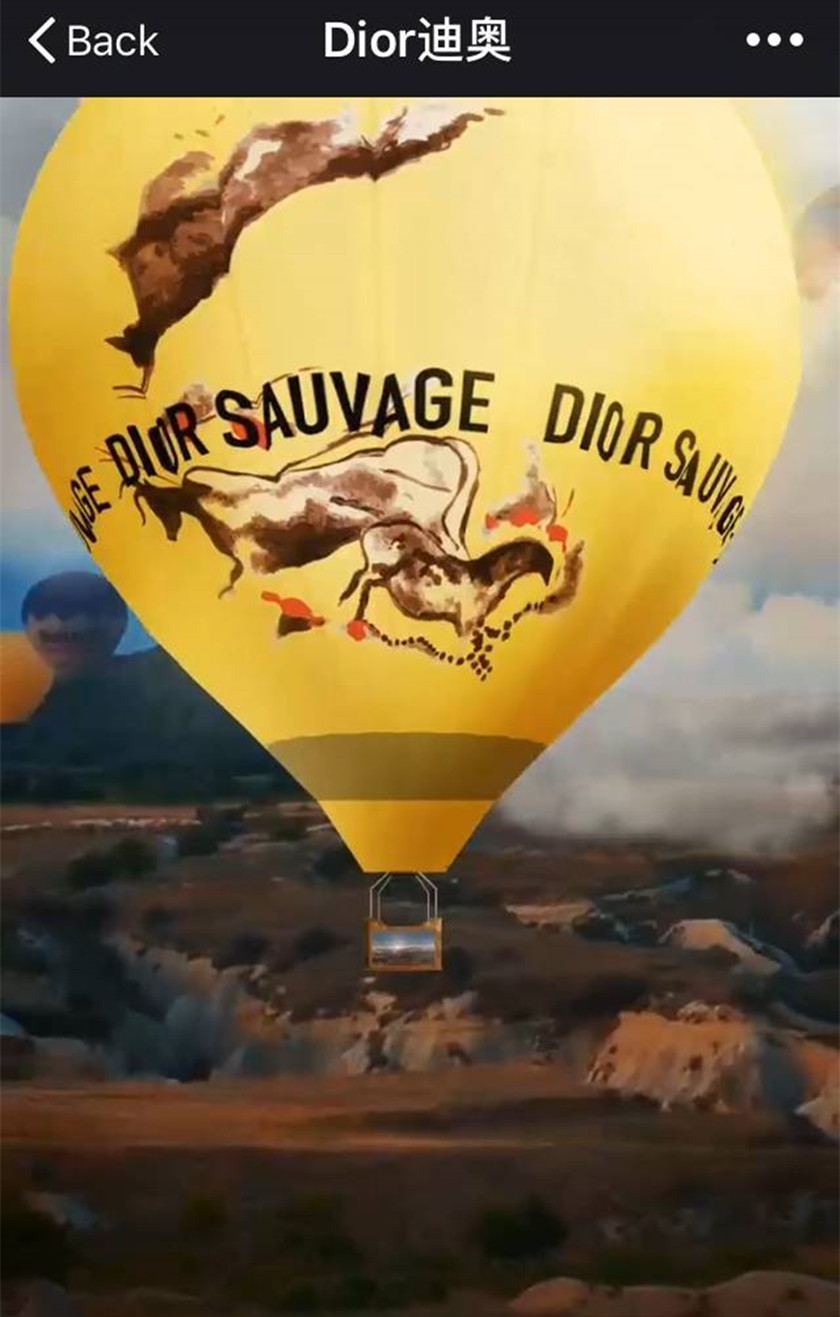 除此之外,Dior(上海店)举办开幕仪式时,也曾临时推出了一个气球小游戏,用来为活动扩大声势。用户只要集齐六款游戏中的Dior商品,无论在多远的地方,都可以乘坐着虚拟热气球,在手机上观看该店铺开业现场的实景。