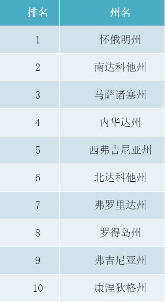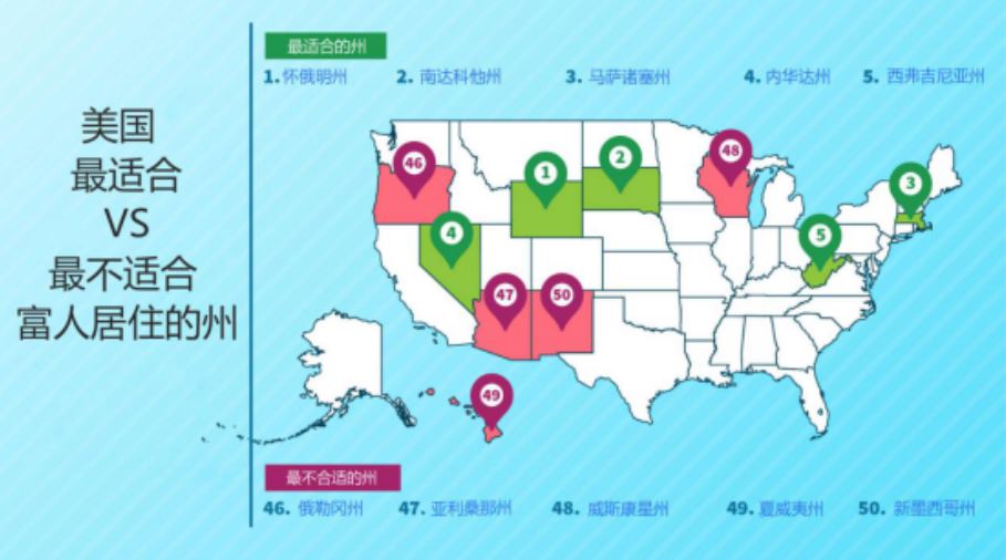 最后附上全美最适合富人居住TOP 10的州排名: