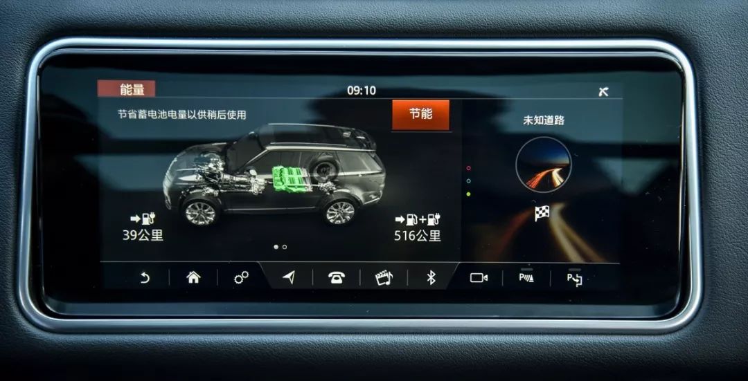 揽胜运动版P400e的外观与内饰并没有什么变化。只不过在车头进气格栅下多了一个充电借口设置,在行李厢地板下多了一块方形锂离子电池。在整备质量上比普通版略重,但我们在试驾过程中丝毫没有感觉到这种沉重感。整个车的运动表现相当出色。特别是标配的电子空气悬架系统,我们在山路上的驾驶极为舒适轻松。
