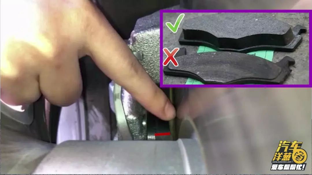 用手摸一下,感觉这个厚度不到手指头肚的3分之1了,就说明这个刹车片该换了,这种情况,刹车片顶多顶多还能再撑个3000公里。