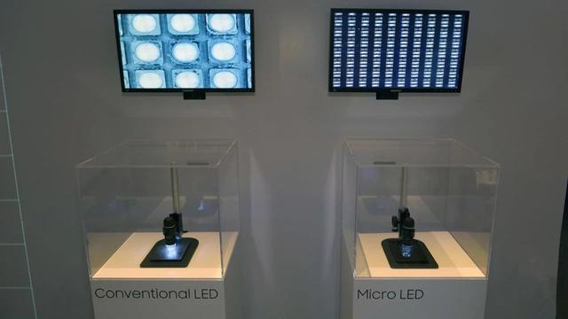 而其他产商并不是没有动作,甚至比苹果更早发力这一领域。早在 2017 年的 CES 上,索尼展示了一块由 144 块 40.3cmx45.3cm 的 Micro LED 模块无缝拼接而成的大型显示屏幕,这也是 Micro LED 技术在大屏幕上的罕见运用。