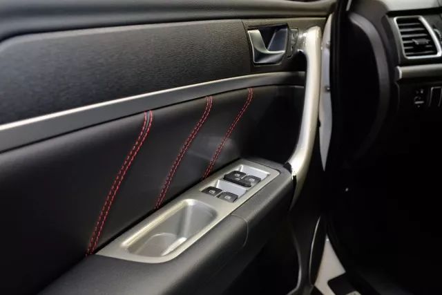 这是我第一次体验哈弗M6,所以也就多点评下静态方面的感受。进入车内以后,这辆11万元的顶配车型身体常规接触到的地方都是软材质,观感上也很好。但伸手摸摸会发现,前IP台材质和车门材质都是以硬塑料为主,只是压制花纹和银色饰板搭配比较讨巧,另外皮质方向盘的材质也能看出来比较一般。